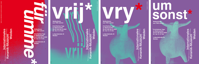 Wie die letzten Jahre verlangt das Keramik-Museum in Weiden zwischen Weihnachten und Silvester keinen Eintritt. Grund genug, zu diesem Thema ein Plakat zu machen. Letztes Jahr stand zum gleichen Thema auf dem Plakat „für lau*“. Das Sternchen erklärte die sprachliche Herkunft dieses Ausdrucks: Er kommt aus dem Jüdischen. Das fanden wir schön, viele Wörter kommen aus dem Jüdischen, und kaum keiner weiß es. Unsere Sprache ist geprägt von unterschiedlichen Einflüssen und Kulturen – letztlich auch das Thema im Keramik-Museum: Weltkulturen aus 7000 Jahren. Das passte also.