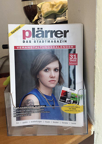 Eher nebenbei betrachte ich den neuen Plärrer-Titel, der in einem Ständer am Tresen steckt. Und denke mir: warum haben sie so ein belangloses Foto genommen? Doch irgendwas irritiert, ich kenne das Bild... ach genau, es hing in der Ausstellung mit zeitgenössischer Portraitfotografie. Aber da hat es mir doch eigentlich gefallen...
