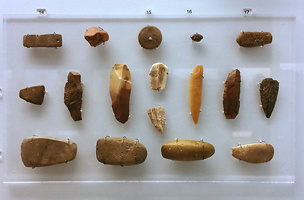 Diese Faustkeile im Kanellopoulou Museum erinnern mich an meine Kindheit. Wir hatten im Dorf einen Getränkehändler, Herrn Reichenberger. Die große Garage stand größtenteils voll mit Getränkekisten, an den Wänden entlang gab es aber Regale, prall gefüllt mit Mineralsteinen, Versteinerungen und eben auch Faustkeilen. Als Kind hat mich das sehr beeindruckt, und so fing ich auch an, nach wertvollen Steinen zu suchen. Viel gefunden hab ich nicht... Das meiste was in der schweren Kiste im Keller ist, sind Geschenke von Herrn Reichenberger. Stolz war ich auf meine Sammlung dennoch. Was mir der Anblick dieser Geräte der Steinzeit klar machte: Die Begeisterung für Museen und Kulturgeschichte hat in jenem Getränkelager ihren Ursprung...